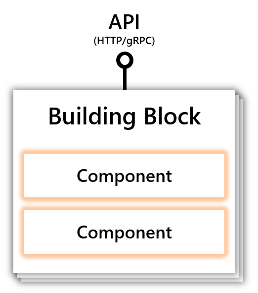 A building block is an HTTP or gRPC API that can be called from your code and uses one or more Dapr components. Dapr consists of a set of API building blocks, with extensibility to add new building blocks. Dapr’s building blocks: