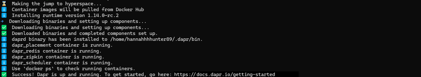 dapr initNow that you’ve installed the Dapr CLI, use the CLI to initialize Dapr on your local machine.