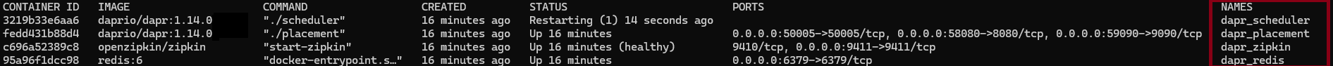 - Running a Dapr scheduler service container instance for job scheduling.