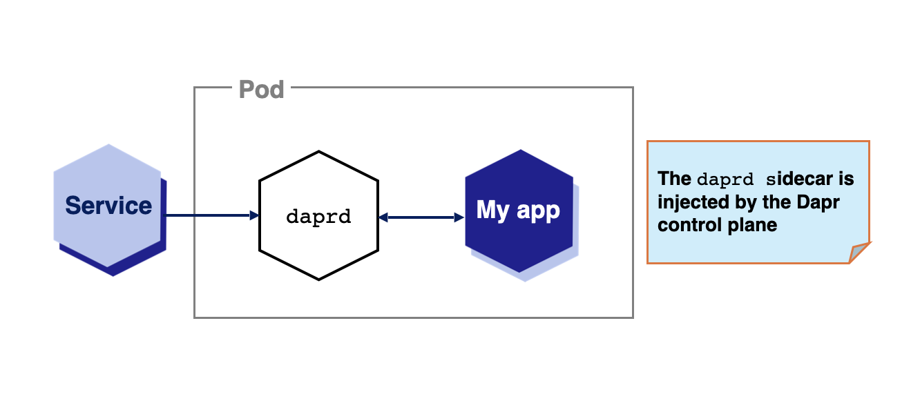 By default, when Dapr is installed into a Kubernetes cluster, the Dapr control plane injects Dapr as a sidecar to applications annotated with Dapr annotations ( dapr.io/enabled: "true"). Sidecars offer many advantages, including improved resiliency, since there is an instance per application and all communication between the application and the sidecar happens without involving the network.